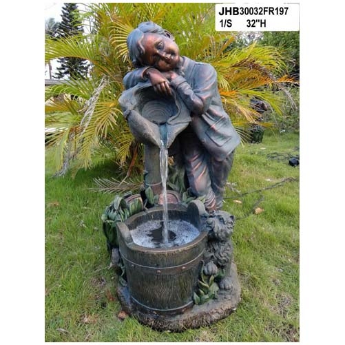 45daysItem Name: 32"H fiber garden fountains boy and dog fountains