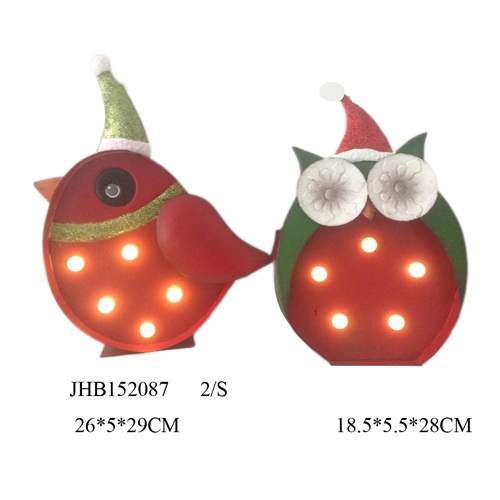 Iron Wall Decorations Christmas owl LED Light Up christmas ights , size 26*5*29cm & 18.5*5.5*28cm, color and size also can be customized. You can contact us if you have and good idea.